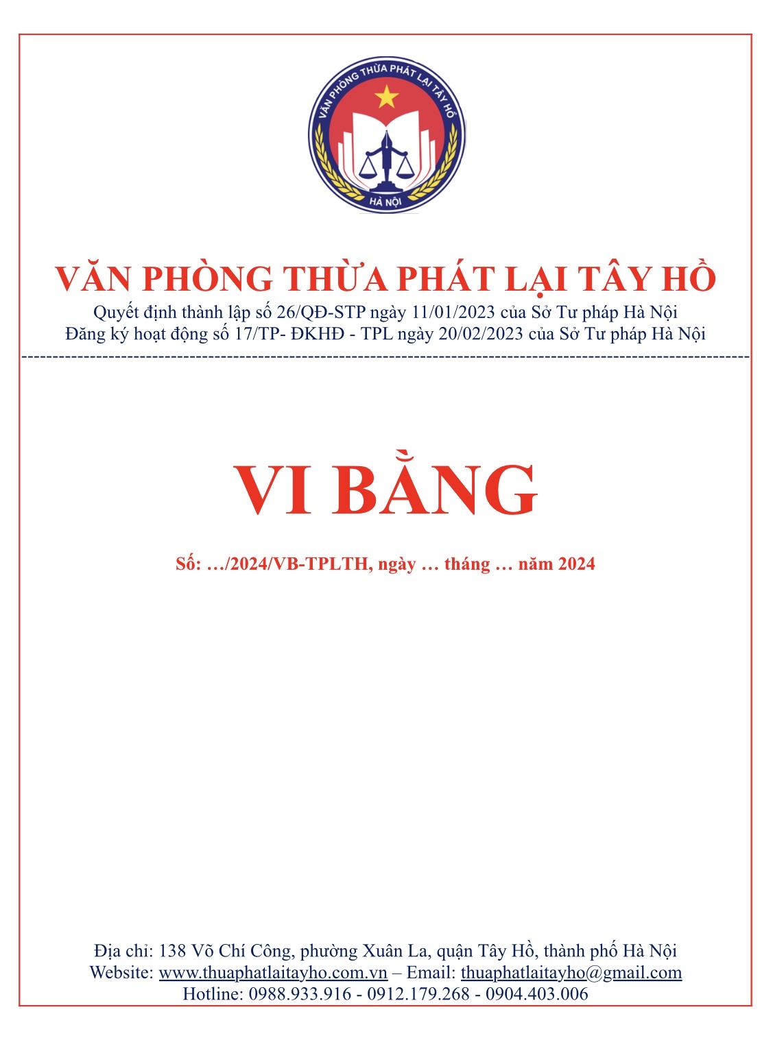 VĂN PHÒNG THỪA PHÁT LẠI TÂY HỒ.