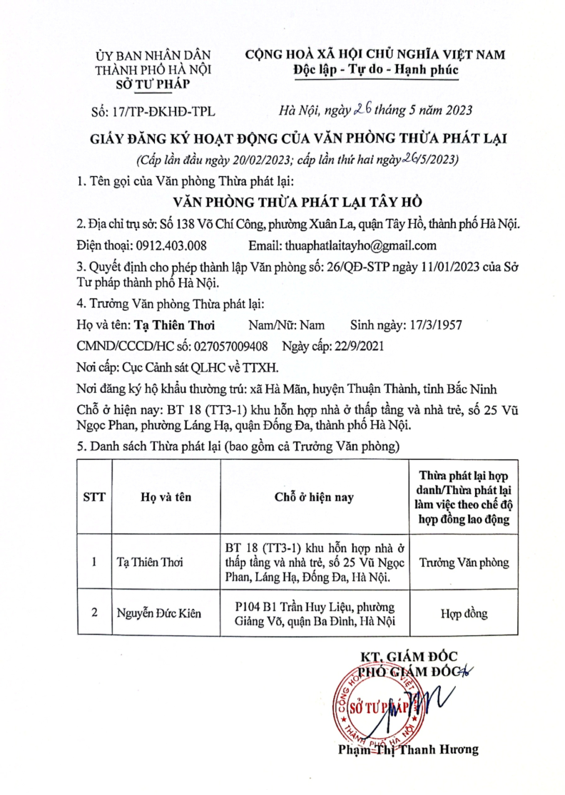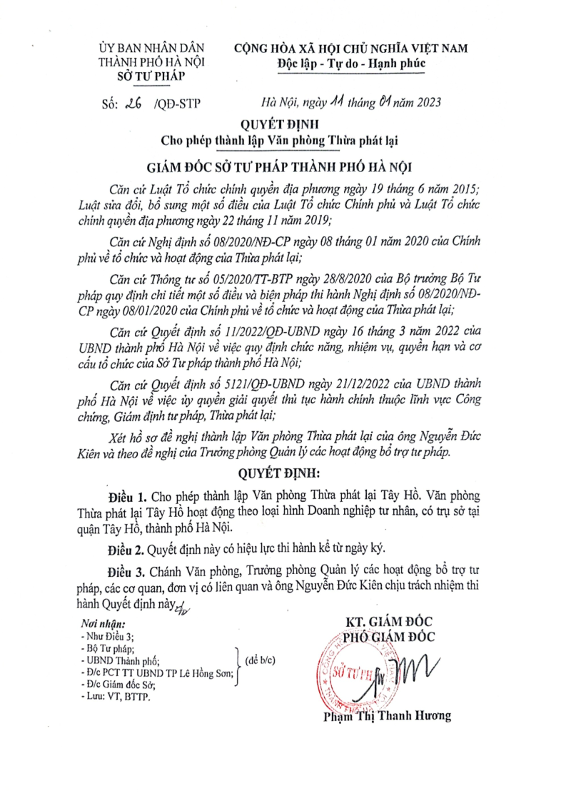Giới Thiệu Văn Phòng Thừa Phát Lại Tây Hồ