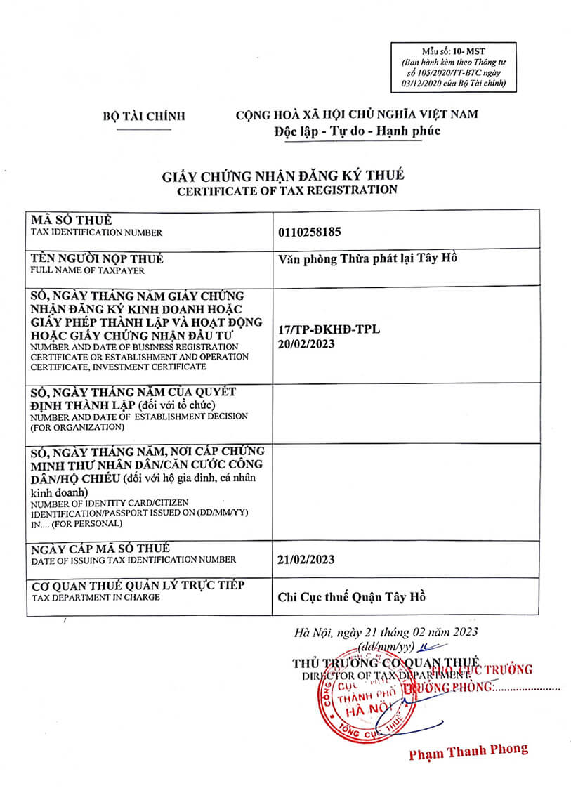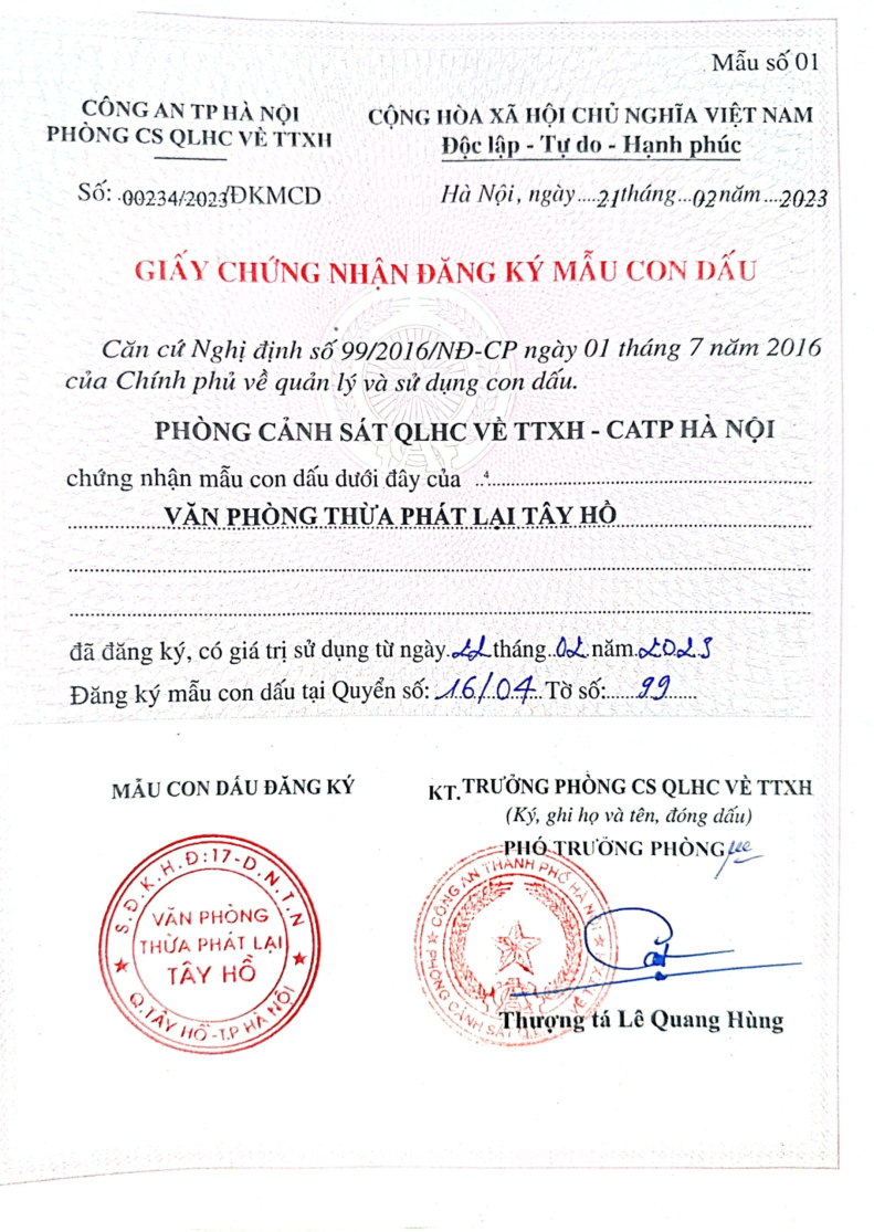 Liên Hệ Ngay Văn Phòng Thừa Phát Lại Tây Hồ